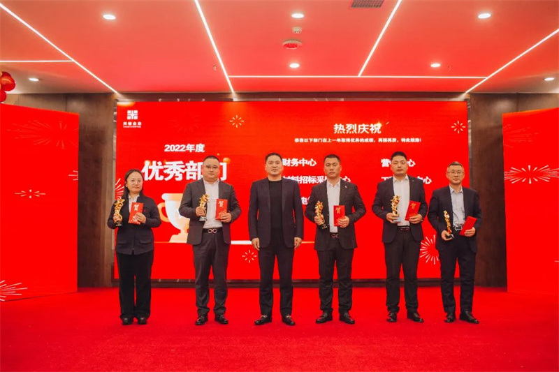 会议上,天格企业董事长郭春刚先生在致辞中说到:回顾一路走过的2022年,我们感慨万千。深刻感到个人、企业的前途命运与时代大势、国家兴衰紧密相连。疫情管控的封与解,行业政策的收与放,经济民生的冷与暖,人们对美好生活预期的乐与悲,无一不在影响着市场脉搏的跳动,也关系着企业的发展存亡。这一年,我们经受住新世纪以来前所未有的市场调整的重重考验,我们顺应国家形势,以“稳中求进,高质量发展”为主基调,奋勇前行。面对时代、环境、市场、行业等重重挑战,我们坚定信心,坚持战略定力,在企业自身战略发展、产品力、服务力、成本控制、安全管理、社会责任、等各个重要方面,取得了来之不易的成绩,为企业的长远发展奠定了坚实基础。企业的发展离不开全体员工的共同努力,回顾过去的一年,天格企业涌现出大批优秀员工,优秀中层干部以及优秀部门。他们热爱企业,责任心强,懂得将有限的时间用来更好地完成自己的职责。他们用实际行动去感召,以人格魅力去驾驭,用专业知识去指导,打造一支强有力的队伍,他们是辛勤的耕耘者,是企业的践行人,他们心中有信念,前方有梦想,脚踏实地,锲而不舍,用天格人的优秀基因,不断创新,为公司的发展立下不可忽视的功劳。在热烈的掌声中,董事长郭春刚、企业负责人孟凡旭、总裁邢峰涛、副总裁李自军、总裁助理张楠等领导向获得优秀部门、优秀中层干部和优秀个人颁奖。