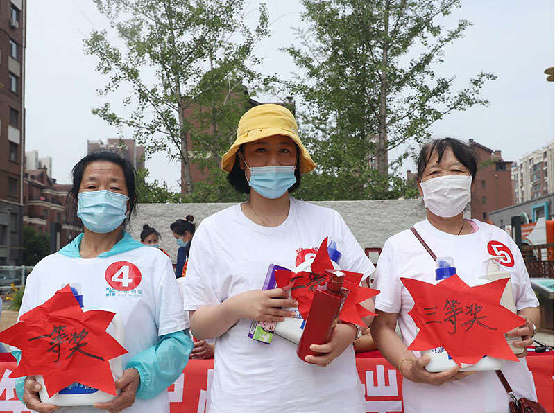在经过紧张激烈的角逐后,三位选手获得了最终胜利,天格物业综合管理部经理曹伟、天格物业总经理助理柳迪、天格物业总经理助理刘禄禄分别为三位选手颁发了奖品,并与获胜者合影留念。
