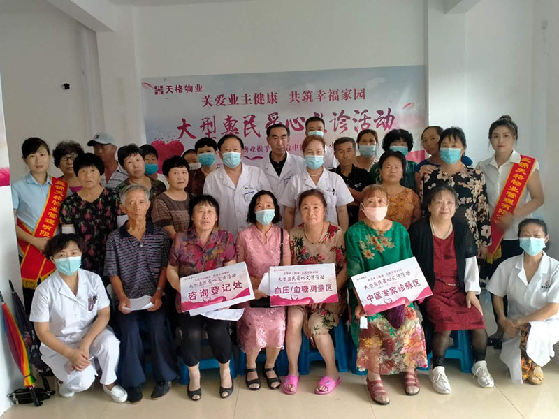 为了进一步优化天格物业暖心服务工作,增强业主对自身健康的关注,了解自己的身体状况,营造健康、幸福、的社区生活氛围。2020年8月8日—9日,天格物业携手兴隆台中医院开展爱心义诊活动,使小区业主在园区内就能享受到免费的体检、中医诊断、健康咨询、疾病预防等超值服务。