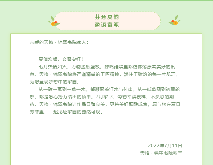 芬芳夏韵 盈语寄笺丨天格 · 锦翠书院B区7月份工程进度播报