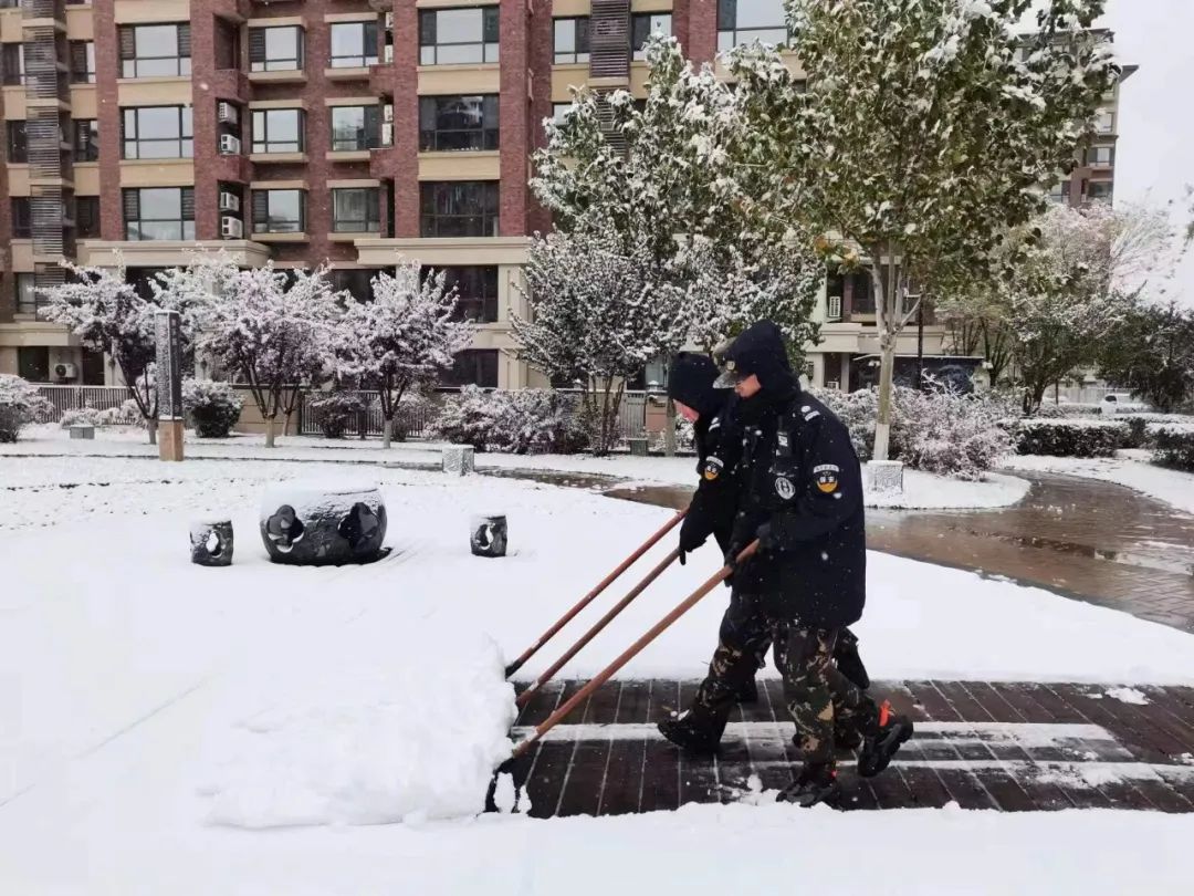 对于物业人来说,雪情就是命令,与这场初雪相约而至的不止是美丽雪景,还有天格物业人坚守风雪的执着守护。天格物业服务中心时刻守护着小区的安全,共同为业主们的出行保驾护航。