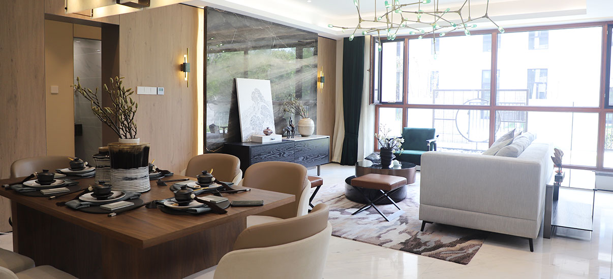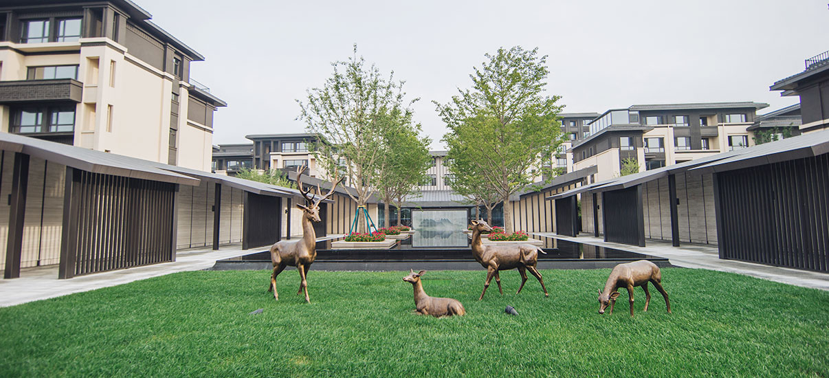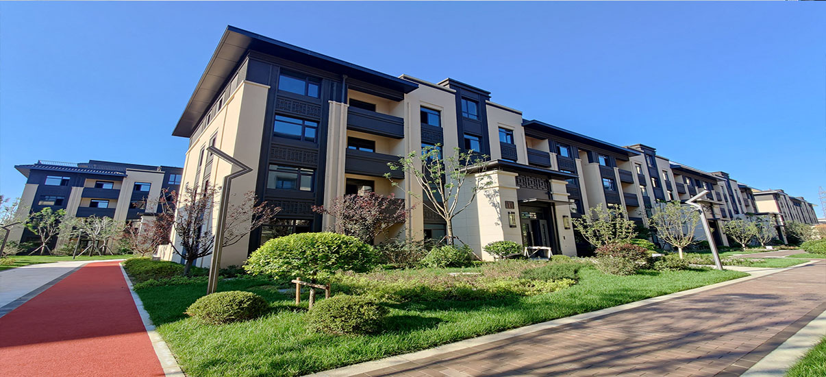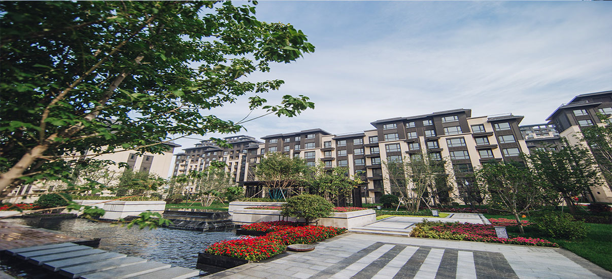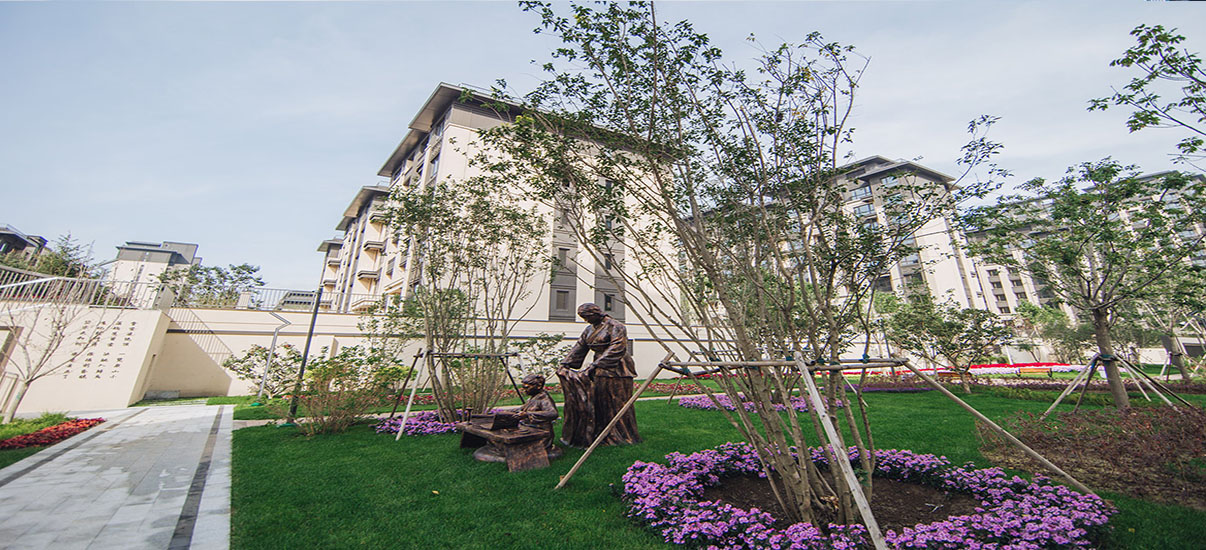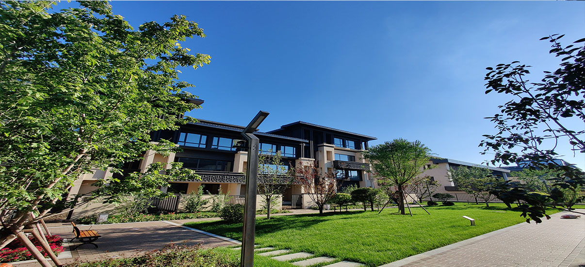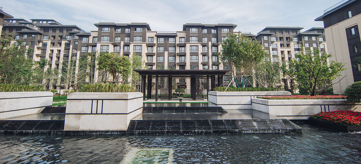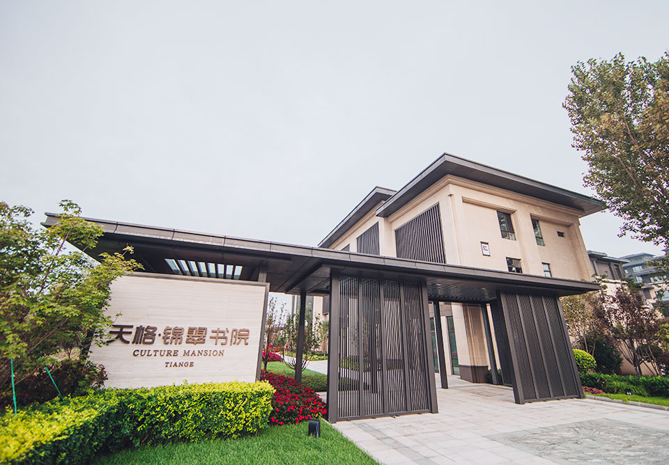 天格·锦翠书院采用新中式建筑风格,以现代手法诠释中式建筑风格,适度提炼中式建筑的造型语言,总结中式建筑居住模式中的空间关系,包括院落空间与街道空间,重现中式建筑与自然元素的和谐关系,创造与自然良性对话的居住氛围。在园林景观设计上,以“三观九制”的中式文化内涵,七进归家礼序的空间脉络,营造一方隽秀雅境,带给业主们以理想和现实的双重享受。园区内还规划设计了一片既可以容纳集体活动、又可以提供个性活动的开放式草坪活动区,同时还打造了约500m²的全塑胶社区儿童活动空间、青年健身场地,为业主提供了一个具有休闲和人文修养的社交平台。